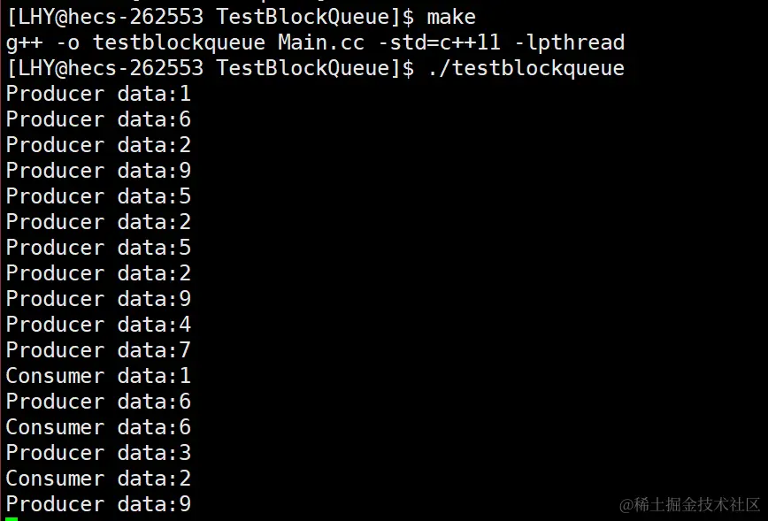 这里一开始的这个异常的现象原因就在于,我是将sleep放到了数据push完毕之后,当生产者生产了一个数据之后,消费者会去消费数据,而在完成消费的打印之后,才会进入sleep,所以就出现了上面的打印异常的情况。同理在我将sleep放到生产者时出现的情况也是一样的道理。