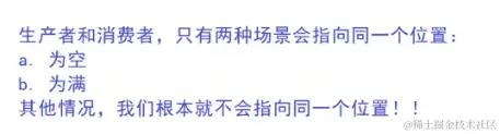 一开始因为队列中为空所以生产者和消费者指向的是同一个位置