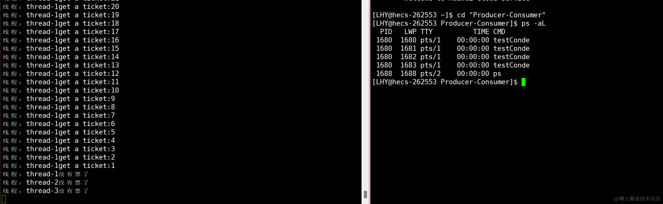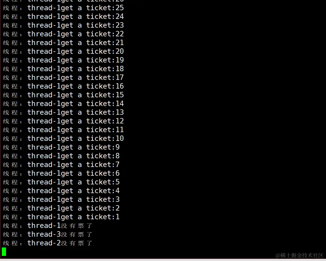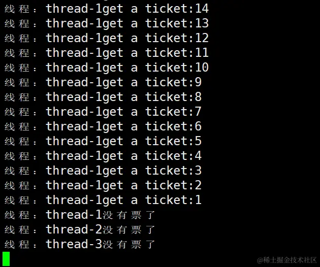 这样哪一个线程得到了那一张票我们就能知道了。