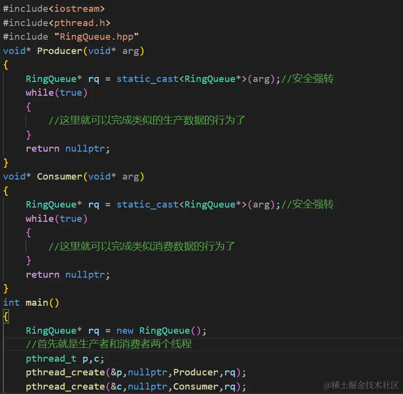 下面来实现一个基于环形队列的生产消费模型,这里不能使用stl容易,需要我们自己去维护这个环形队列。