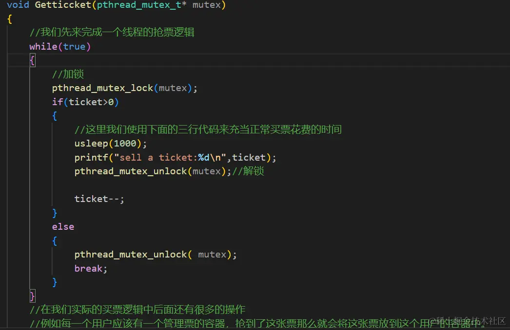 然后根据我们实现的Thread类,这个锁就会被传递到Getticket函数处。