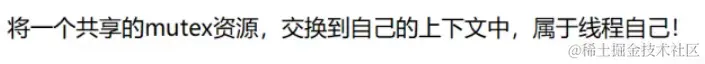 这里我们也就知道了,exchange将内存中的数据放到线程的上下文其实就是将共享的数据修改为某一个线程独占。因为exchange这个指令是原子的,所以上面的lock这一段伪代码无论在哪里被其它的线程切换都是原子的。一个线程将1拿走了,另外一个线程执行这段代码拿到的就是0。即使这个线程在判断的时候被切换走了,在离开的时候也会将寄存器中的数据带走。之后当另外的线程来的时候,首先会写入数据将寄存器中的1覆盖。然后exchange拿到0,让自己被阻塞。