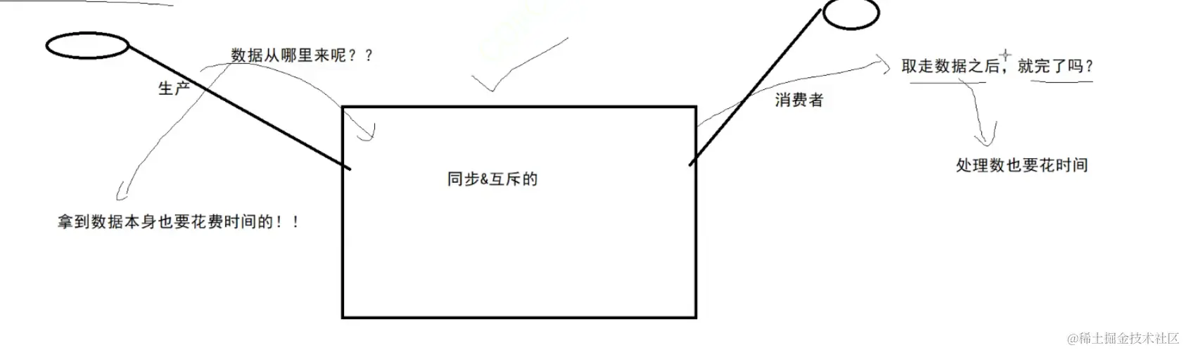 但是上面的代码是做不到让多个生产或者消费做到互斥的。