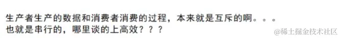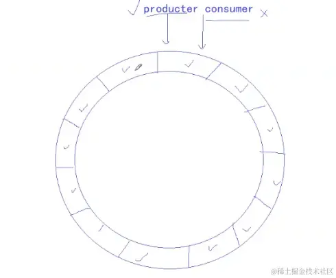 在这个环形队列的生产消费模型中,生产和消费是可以做到并发去运行的,而之前的阻塞队列的生产消费模型则做不到。