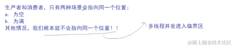 而在生产者和消费者没有执行同一个位置的时候,往后执行此时就做到了多线程并发访问临界区