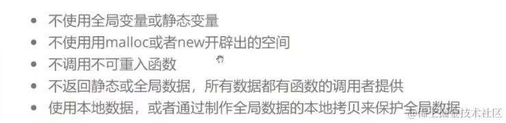 对于可重入和不可重入没有褒贬之分,只是不同函数的特点而已。我们现在使用的绝大多函数都是不可重入的。包括我们使用过的很多stl容器中的函数。例如我们使用过的push_back等函数,都不是可重入的,因为使用了全局的空间配置器来对资源进行管理的。