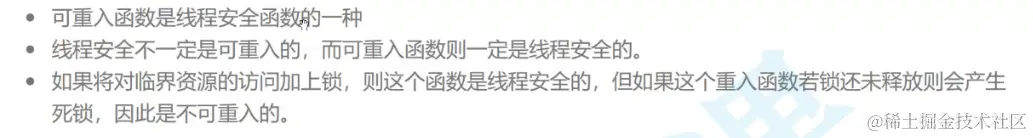 所以第一个概念关于可重入和不可重入描述的是函数的特点,和线程是没有关系的。