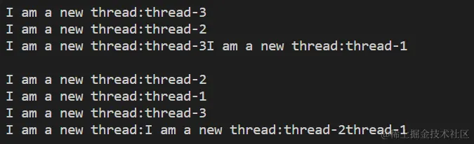 但是从我截图打印出来的信息我们就能看到一个异常点,那就是我截图的这一部分都是由thread1线程完成的。