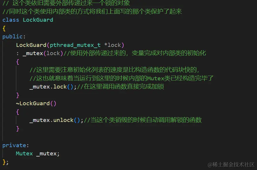 然后是我们的第二个类。LockGuard,至于为什么要叫做锁的守护者,写完代码我们就知道了。