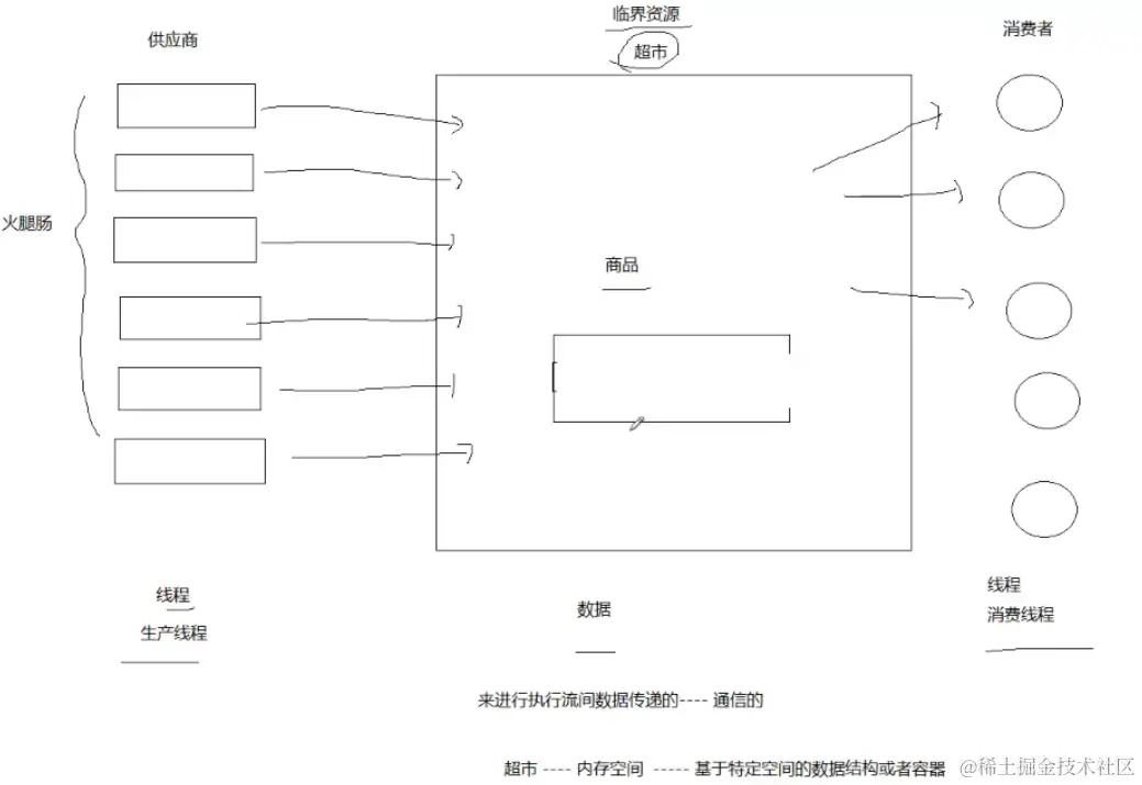 对于生产者来说认为空间就是资源,而对于消费者来说数据就是资源。当空间资源不够了生产线程就不能在生产了,而如果数据不够了消费线程也就不能消费了。