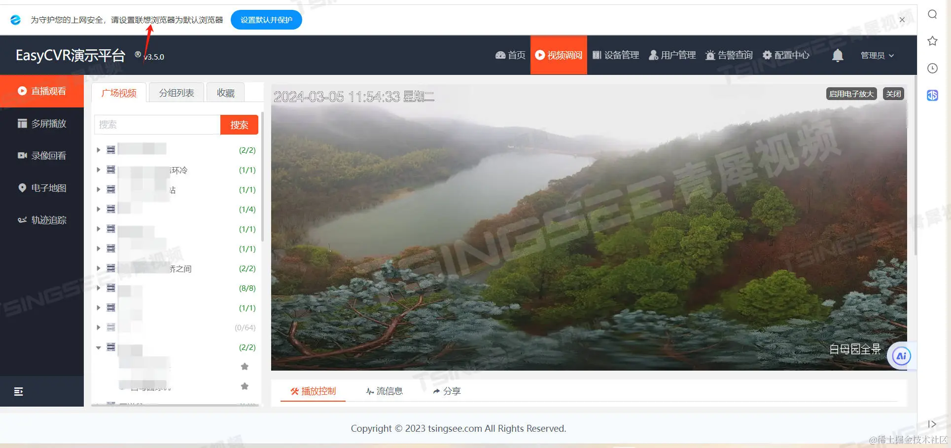 AI视频智能分析/视频监控管理平台EasyCVR能在复杂的网络环境中(专网、内网、局域网、广域网、公网等),支持设备通过4G、5G、WIFI、有线等方式接入,并将设备进行统一集中接入与视频汇聚管理,经平台接入的视频流能实现多格式分发,包括:RTMP、RTSP、HTTP-FLV、WebSocket-FLV、HLS、WebRTC、ws-fmp4、http-fmp4等,支持在手机、电脑、电子大屏、电视墙、小程序/微信端等多终端上展示与浏览,极大满足多场景个性化安防视频监控需求。