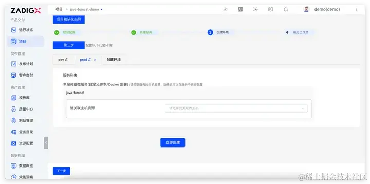 3. 创建环境 dev 和 prod,分别用于测试和生产发布。
