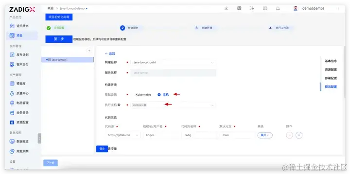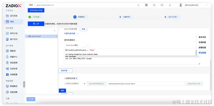 2. 配置 java-tomcat 服务的构建和部署脚本。