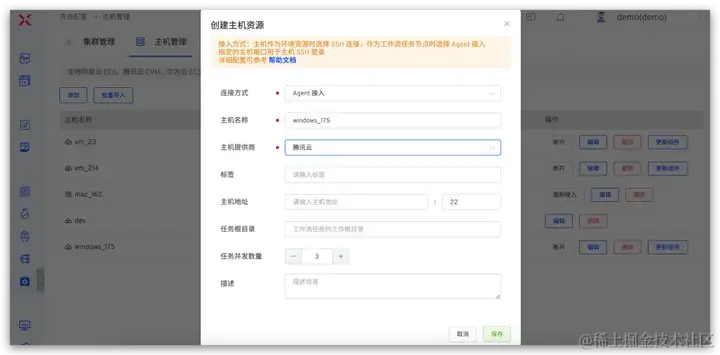 1. 在 Zadig 上 「资源配置」-> 「主机管理」添加主机,填写以下必要信息。