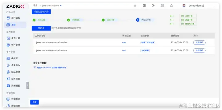 - java-tomcat-workflow-ops:用于生产发布,进入项目后可对工作流进行微调,加上必要的审批过程,使得生产发布更安全可靠。