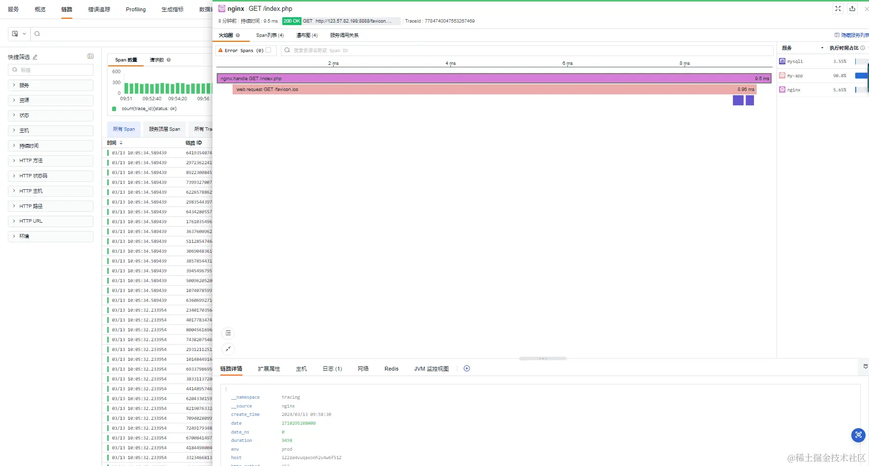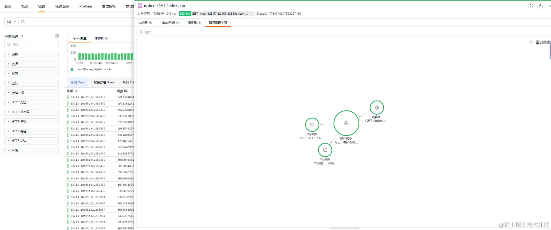 根据以上实验过程可实现应用链路数据展示,以下为具体的截图。