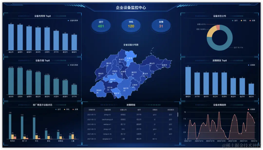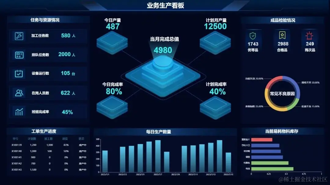 本期为大家推荐DataEase v2版本中4款精美的制造行业数据大屏模板。