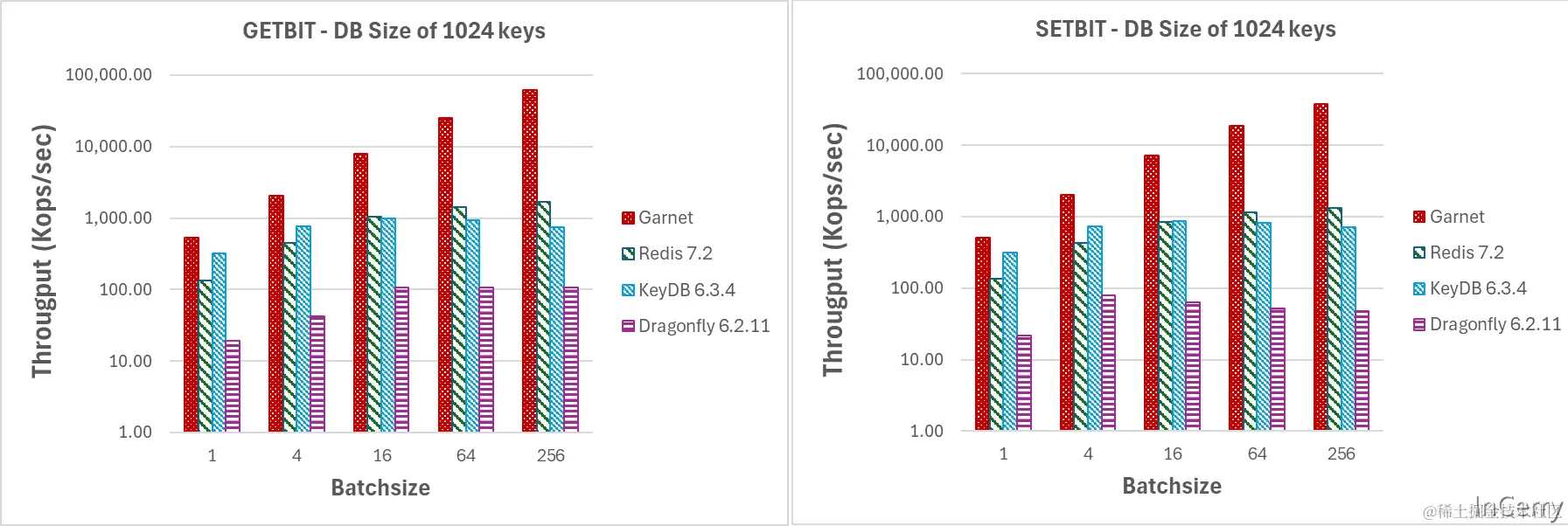 Garnet 支持大量不同的复杂数据结构,如Hyperloglog、位图、有序集合、列表等。下面,我们将为其中几个精选的数据结构展示性能指标。
