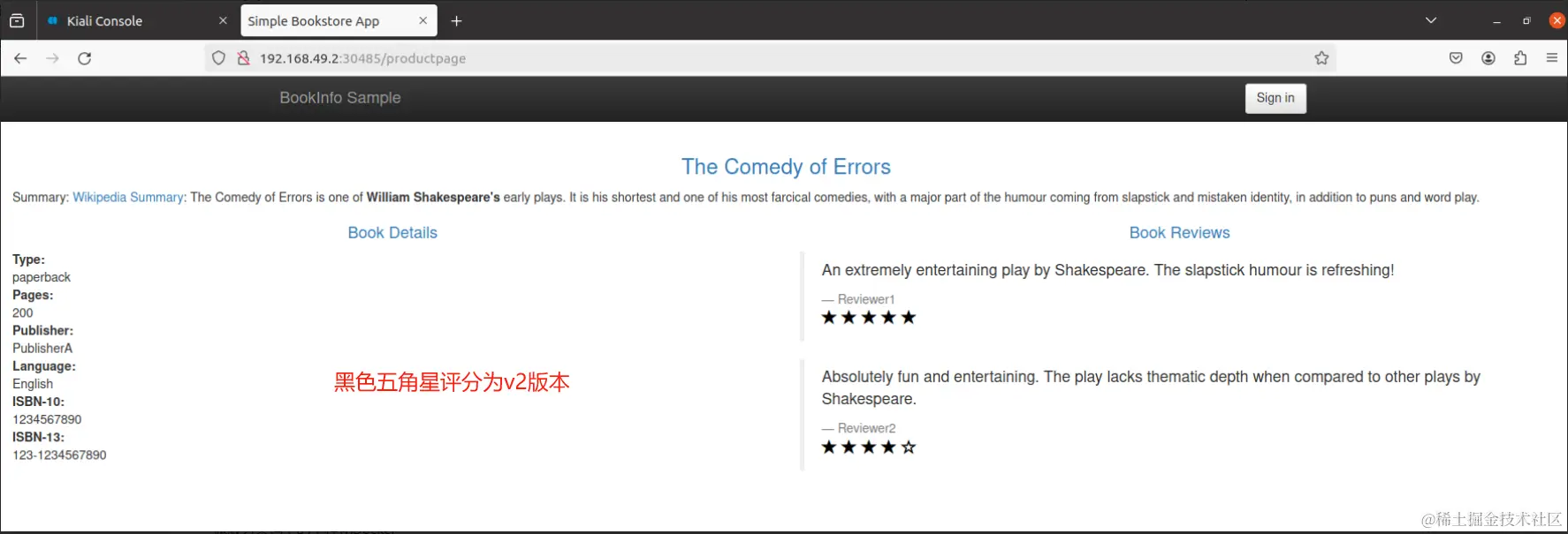 - 版本v3调用该ratings服务,并将每个评级显示为1到5个红星。