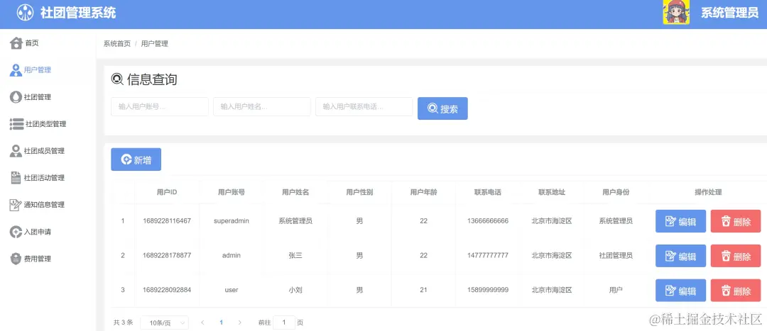3、社团成员后台
