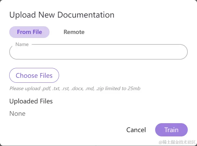 DocsGPT支持多种类型的文档,包括TXT、PDF、ZIP、MD、RST等。你可以上传你自己的文档,或者使用它内置的一些示例文档,如Python、TensorFlow、PyTorch等。