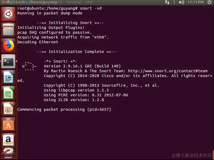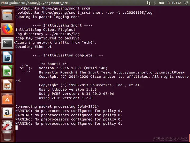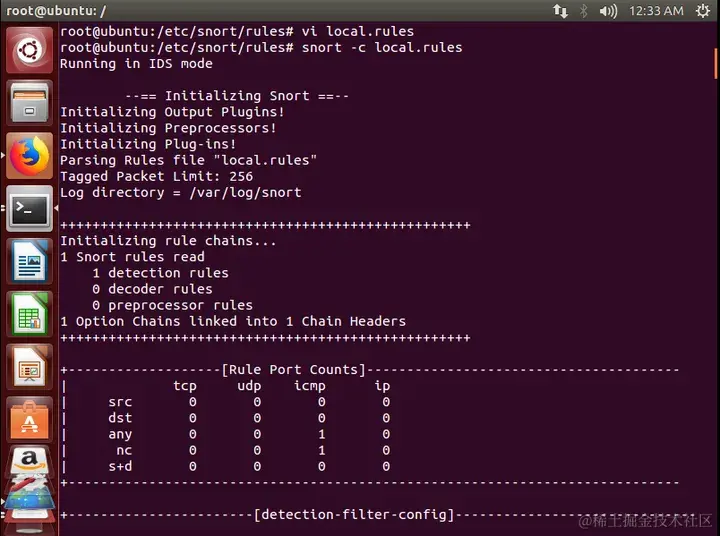 配置完规则后,启动NIDS模式:snort -c local.rules