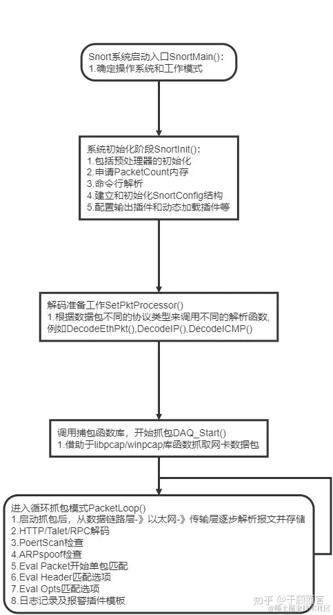 网络入侵检测模式是共有5种动作,pass、log、alert、dynamic及activate,而且是可配置的。我们可以让Snort分析网络数据流以匹配用户定义的一些规则,并根据检测结果采取一定的动作。