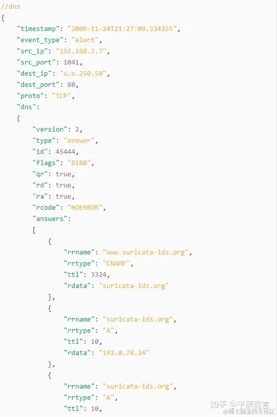 suricata所有的告警,元数据,文件信息和特定协议记录都会记录在eve.json中,事件类型 分为alert、http、dns、tls,drop