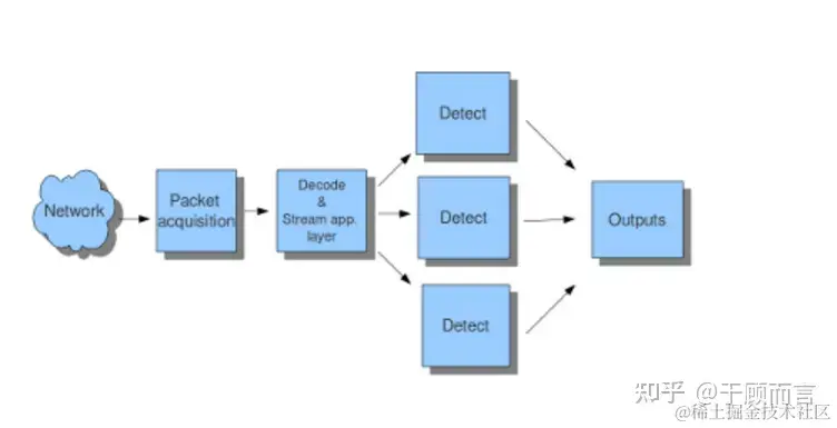 Suricata使用的默认运行模式是autofp(代表“自动流绑定负载均衡模式”)。在这种模式下,来自每一路流的数据包被分配给单一的检测线程。