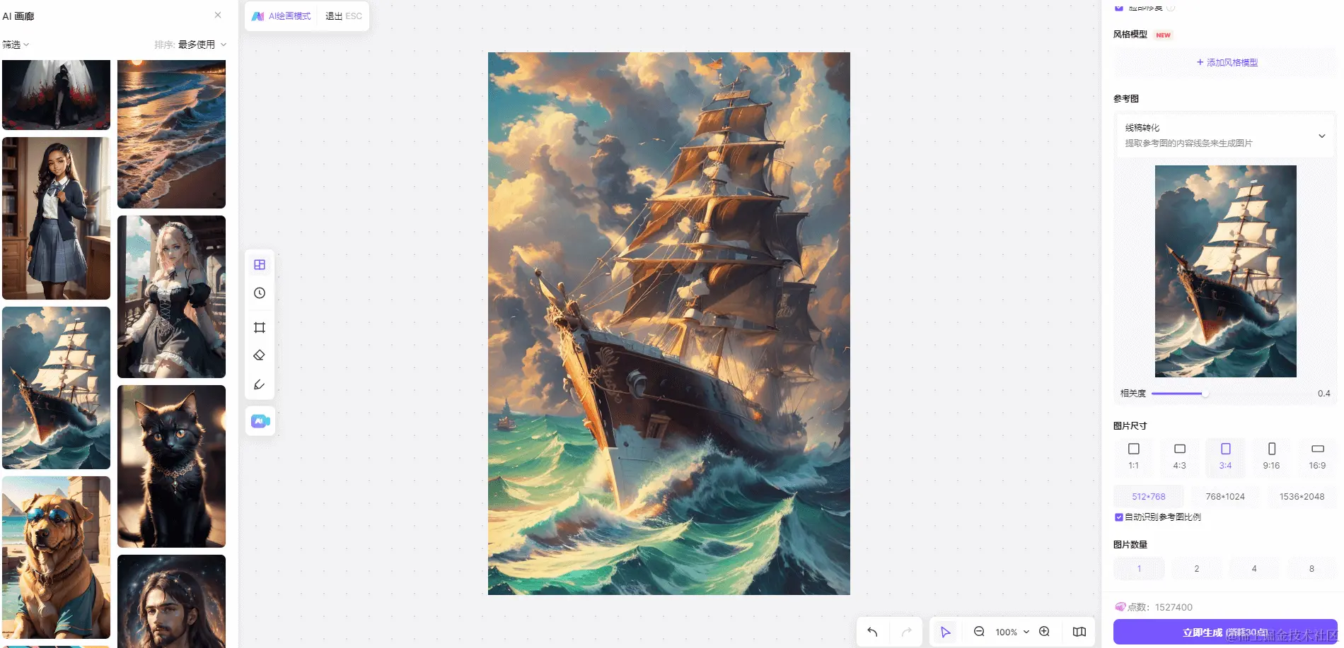 前面我们提及了 4 款 AI 绘画免费图生图工具,这些 AI 绘画工具的用法大同小异,下面我们以其中的 boardmix AI 绘画图生图为例,详细介绍如何使用 AI 绘画生成免费可商用图片: