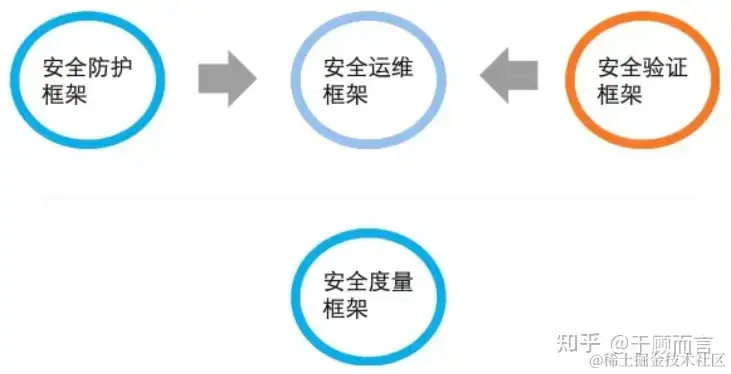 安全运营整体框架可分为几个小框架,分别是安全防护框架、安全运维框架、安全验证框架和安全度量框架。