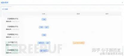 失陷检测情报,即攻击者控制被害主机所使用的远程命令与控制服务器情报。情报的IOC往往是域名,IP,URL形式,有时也包括SSL证书,HASH等形式,这种IOC可以推送到不同的安全设备中,如NGFW,IPS,SIEM等,进行检测发现甚至实时阻断,这类情报基本上都会提供危害等级,攻击团伙,恶意家族等更加丰富的上下文信息,来帮助确定事件优先级并指导后续安全响应活动。使用这类情报是及时发现已经渗透的到组织的APT团伙,木马蠕虫的最简单,及时,有效的方式。