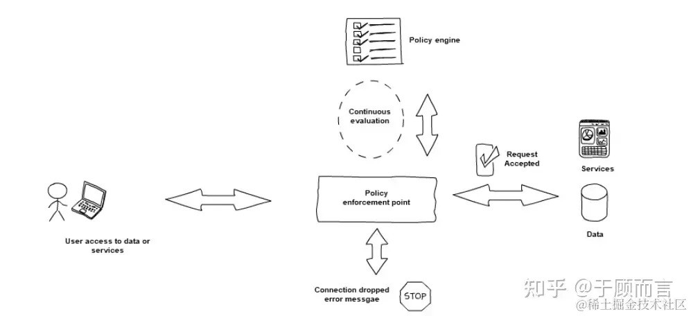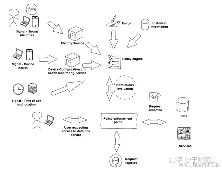 其次,我们应该考虑策略引擎仅可以与可信的策略执行点进行通信,而策略执行点也需要和内网服务建立安全连接,确保用户设备是经过验证的,如果你使用的是托管云服务提供的策略引擎,那么解析signal的过程需要依托服务商的安全能力。