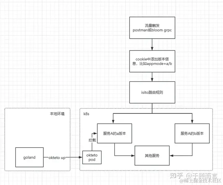 Istio负责对外部进入的流量进行标记,通过istio路由到同一服务的不同版本。
