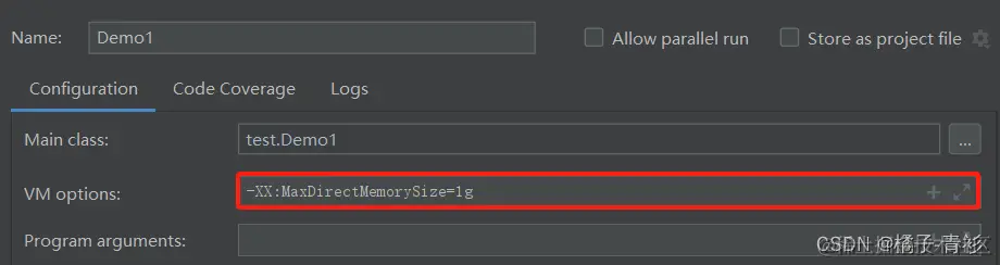 设置直接内存的大小: