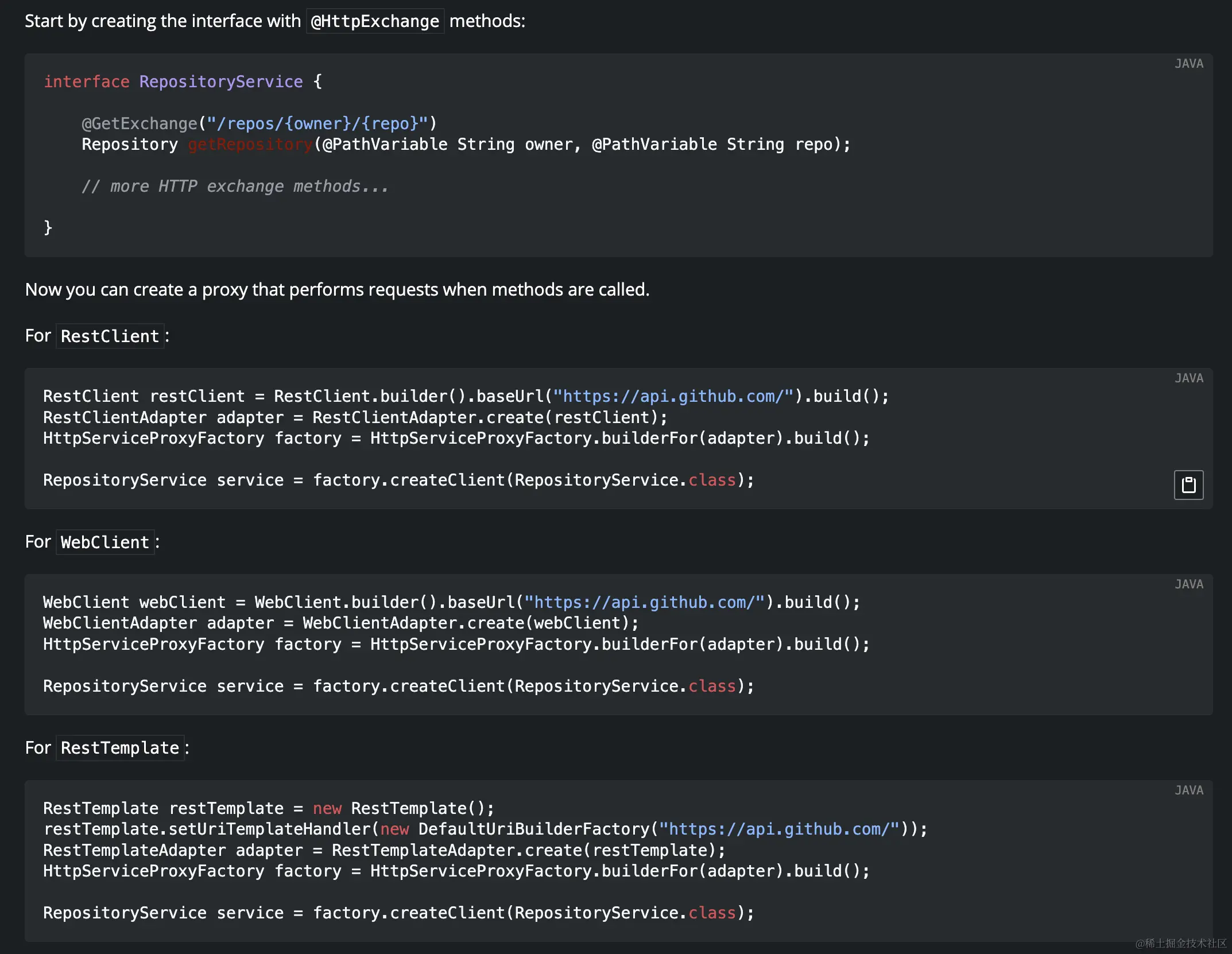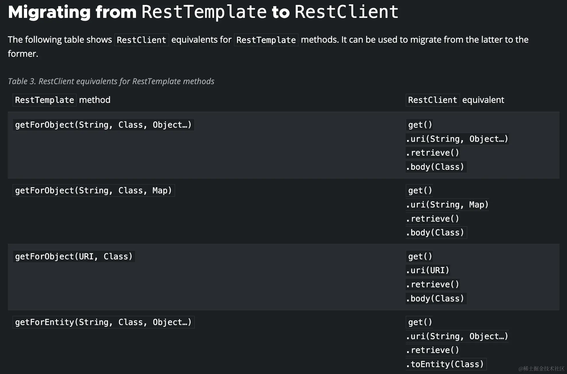 相比于上面两位这个更是古老,也正因此更为常见,使用的更多。但是官网明确表示,推荐使用RestClient替换RestTemplate,甚至还细心的整理了替换方案,可知官方可能计划着在未来彻底废弃RestTemplate,也许哦。