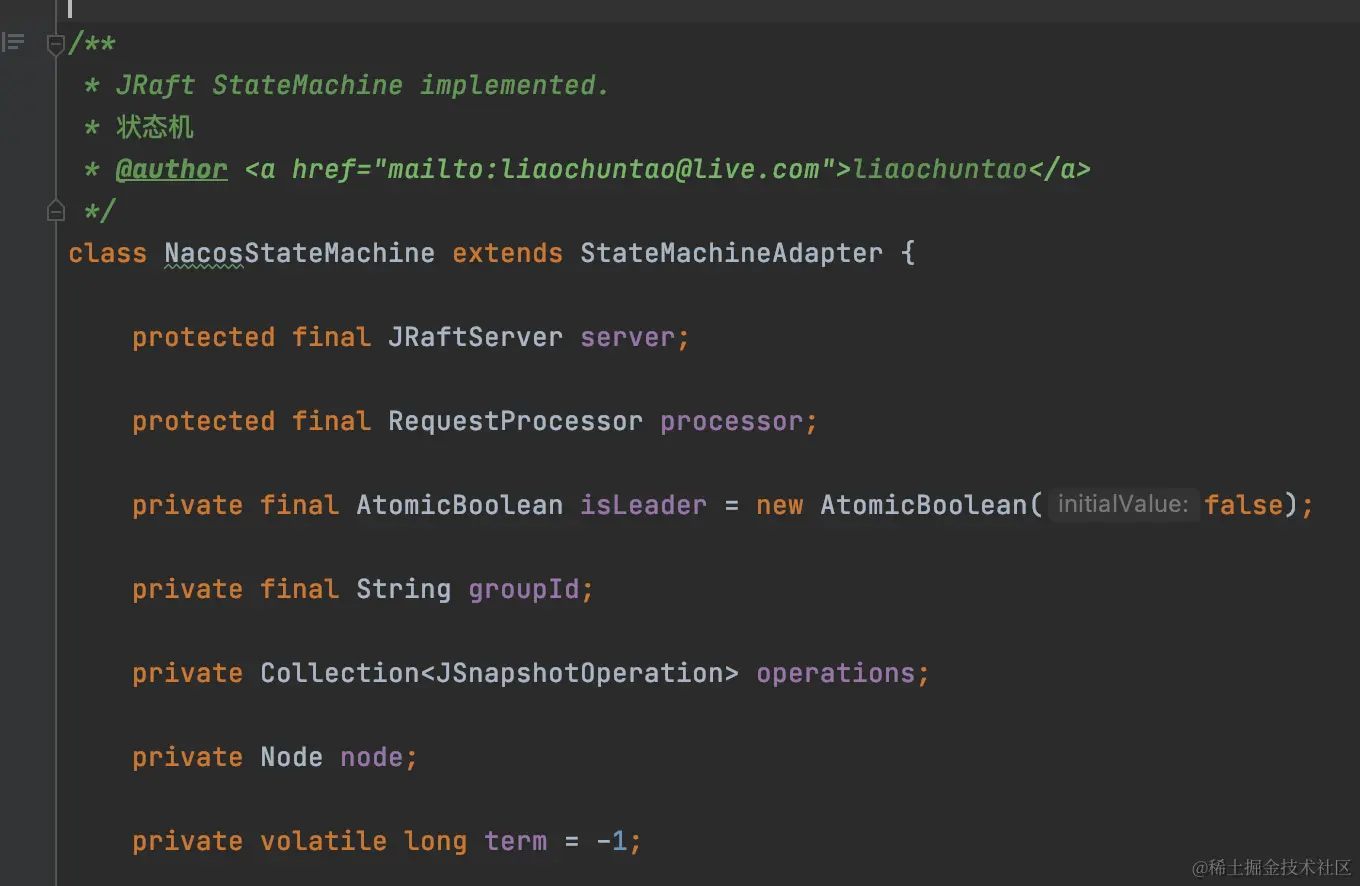 Nacos在整合JRaft框架的时候,自然而然也会(间接)实现这个状态机