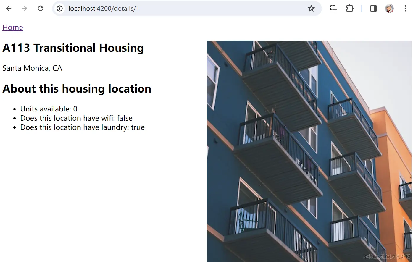 - 进入 src/app/details/details.component.ts 文件,更新 constructor(),使用异步版本的 getHousingLocationById()