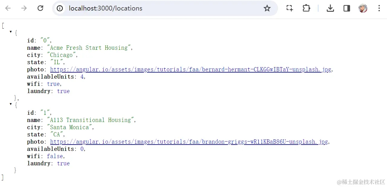 最后,我们将启动一个 JSON 服务,提供数据列表的请求支持,在 housing-service.ts 使用。