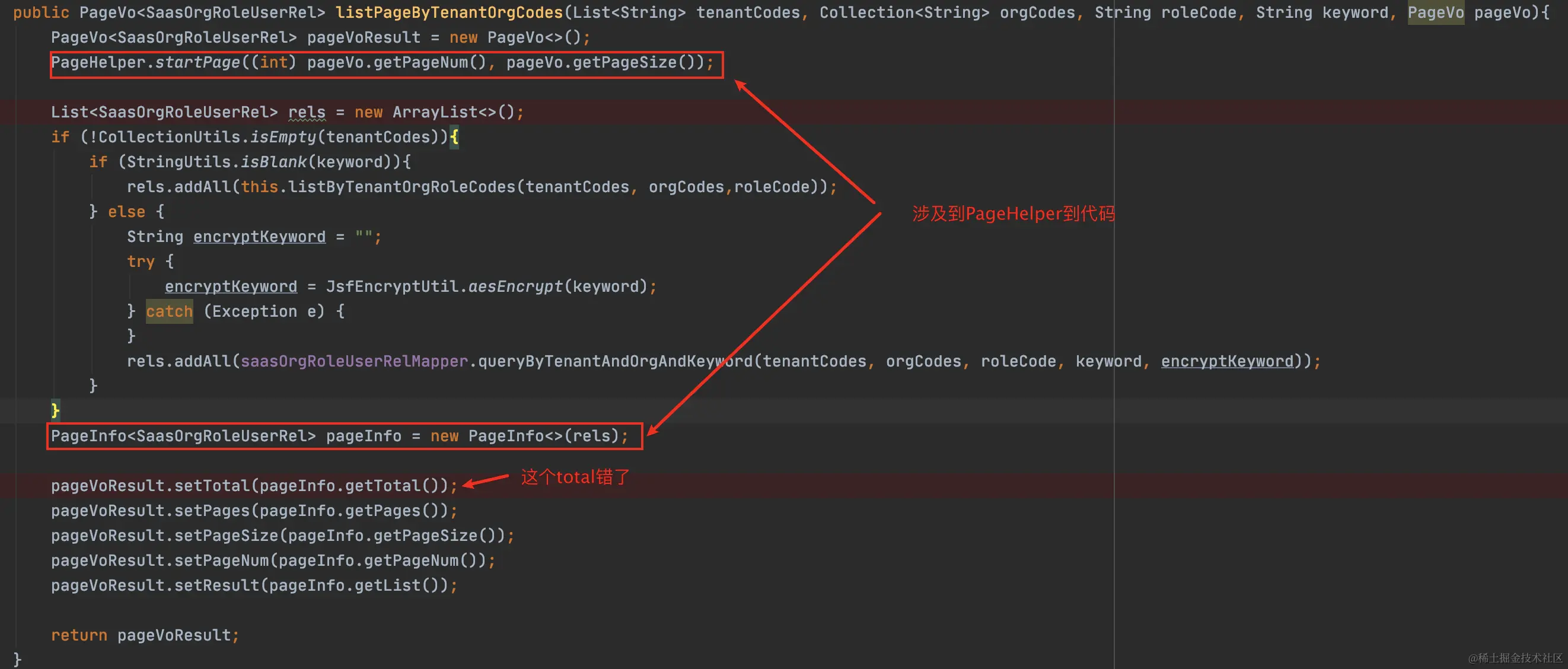检查结果:网上有人遇到 对返回结果有类型转化导致total错误的情况, 以此类推,发现当前代码虽没有对返回结果进行类型转换但是对mapper返回的结果更换了实例对象然后将更换后的对象包装,