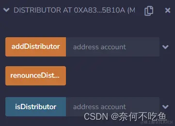 Distributor.sol:中间商角色的管理合约,功能为:添加新的中间商地址、移除中间商地址、判断角色地址是否被授权