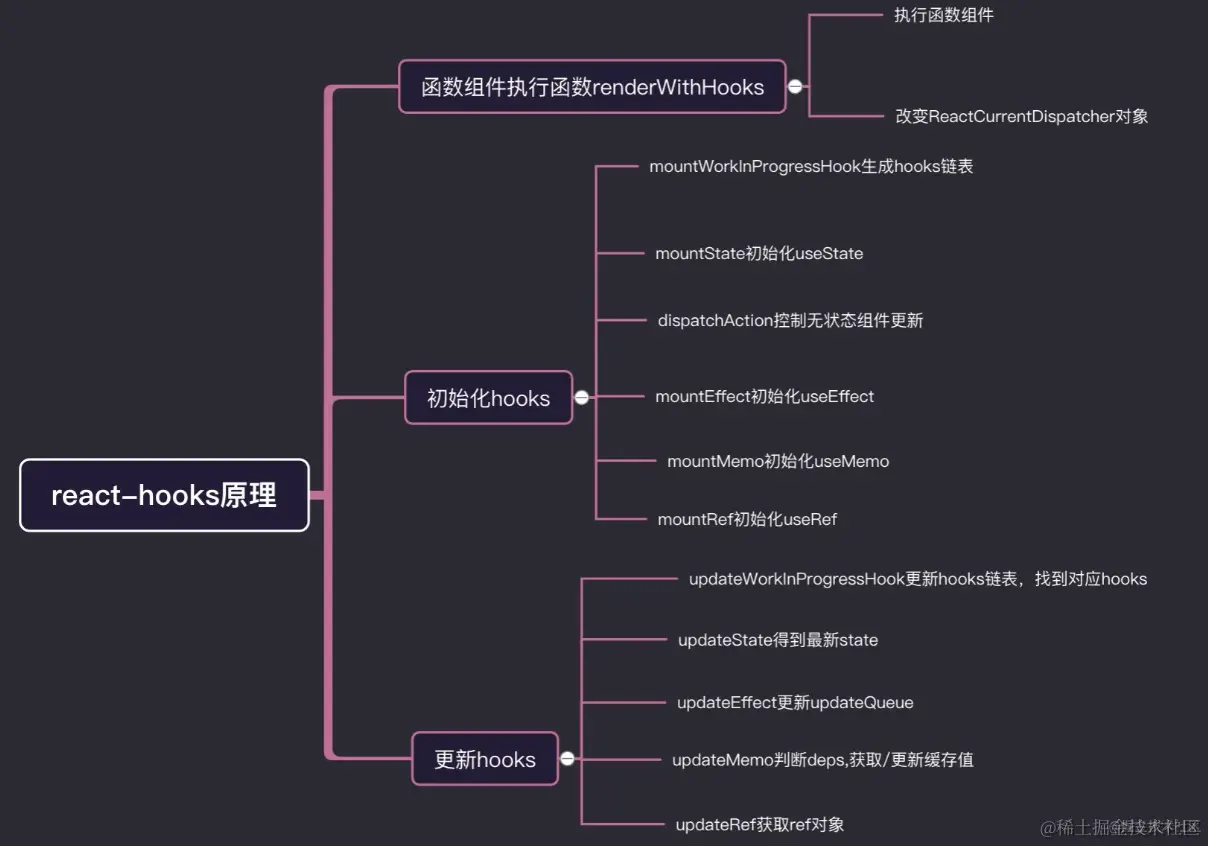本文将重点围绕四个中重点hooks展开,分别是负责组件更新的useState,负责执行副作用useEffect ,负责保存数据的useRef,负责缓存优化的useMemo, 至于useCallback,useReducer,useLayoutEffect原理和那四个重点hooks比较相近,就不一一解释了。