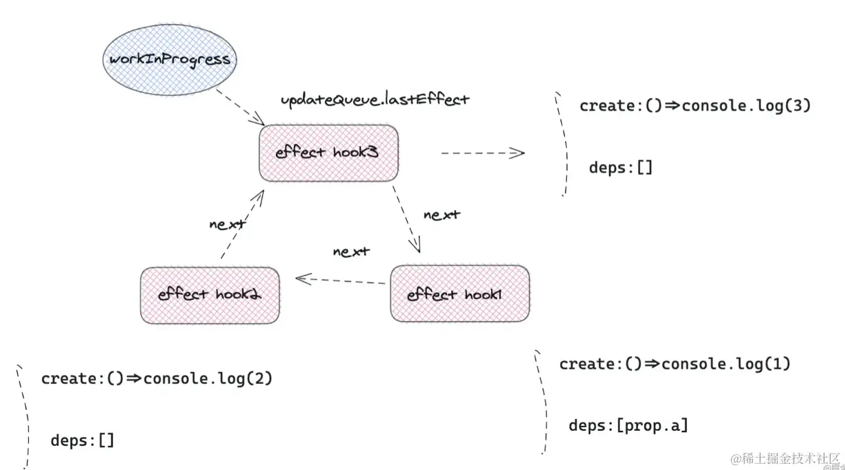 不过这里有一点,值得注意,nextCreate()执行,如果里面引用了usestate等信息,变量会被引用,无法被垃圾回收机制回收,就是闭包原理,那么访问的属性有可能不是最新的值,所以需要把引用的值,添加到依赖项 dep 数组中。每一次dep改变,重新执行,就不会出现问题了。