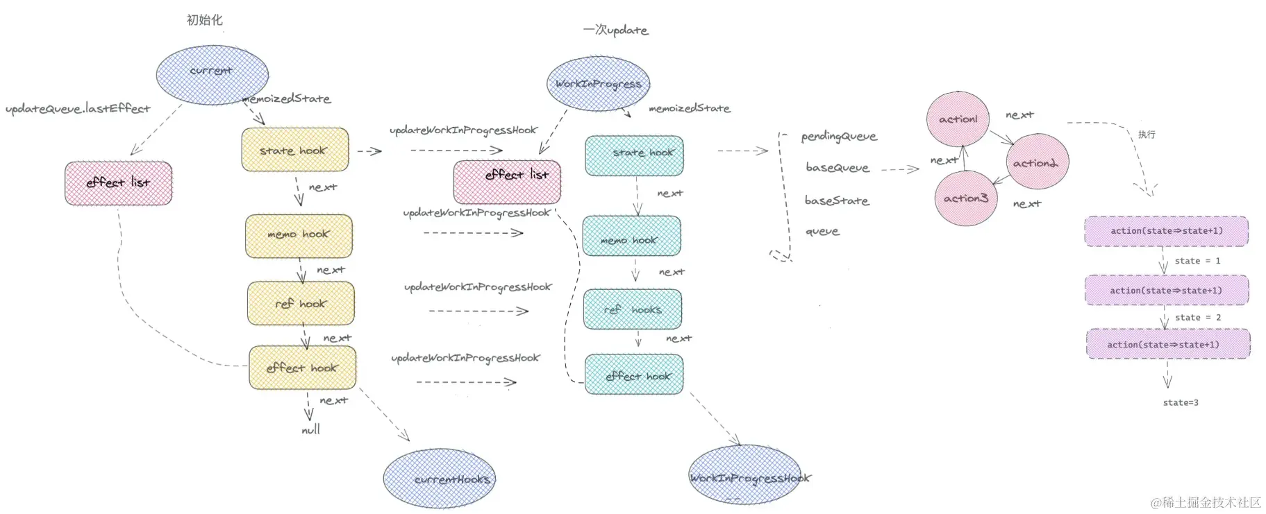memoizedState: null, // useState中 保存 state信息 | useEffect 中 保存着 effect 对象 | useMemo 中 保存的是缓存的值和deps | useRef中保存的是ref 对象