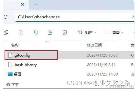 1.进入该目录查看.gitconfig文件
