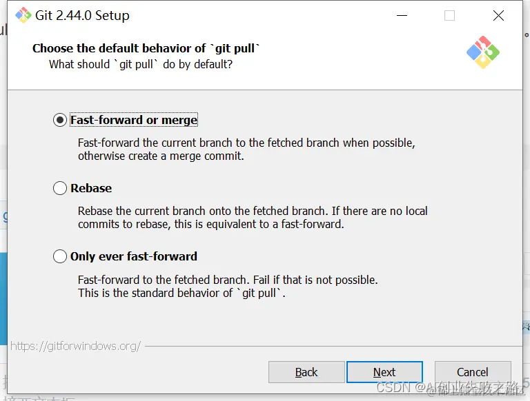13.选择 Git pull 合并的模式,选择默认的“Fast-forward or merge”,然后点击【Next】。
