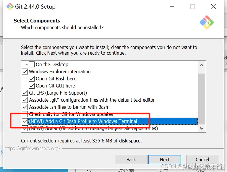 5.勾选上“(NEW!) Add a Git Bash Profile to Windows Terminal”,点击【Next】。
