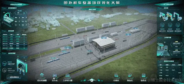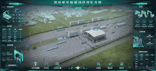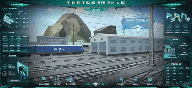 机车整备场是铁路运输系统中的重要组成部分,它承担着机车的维修、保养和整备工作,对保障铁路运输的运维和安全起着至关重要的作用。本案例实现了对机车入库-检查-出库作业流程的可视化展示。