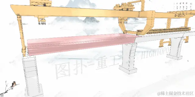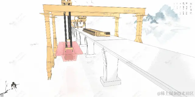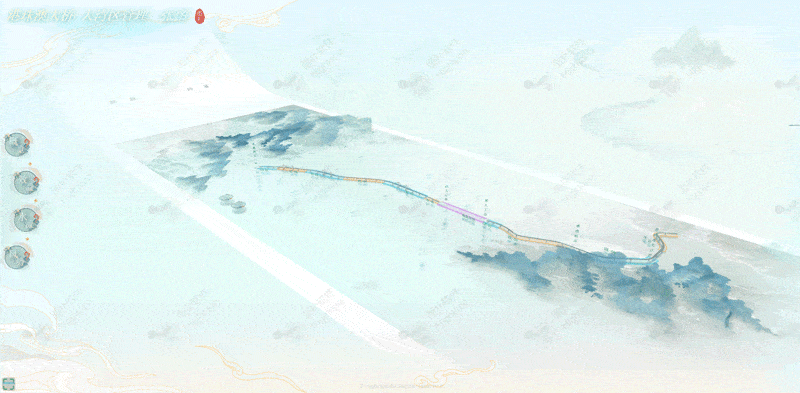 HT 并非局限于传统的工业设计风格,浓浓的中国风山水画卷元素也可以发挥得淋漓尽致。本案例以架桥机假设桥梁的工程为例,将严肃枯燥的工程施工步骤,以艺术形式体现。