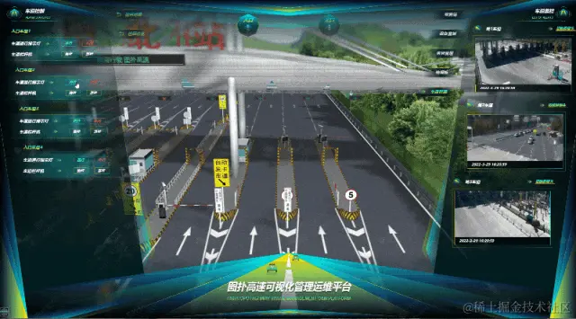 将 ETC 门架进行了完整的三维场景构建,能够管理门架以及门架上所有的设备对象。支持通过数据配置,生成不同的监控场景。
